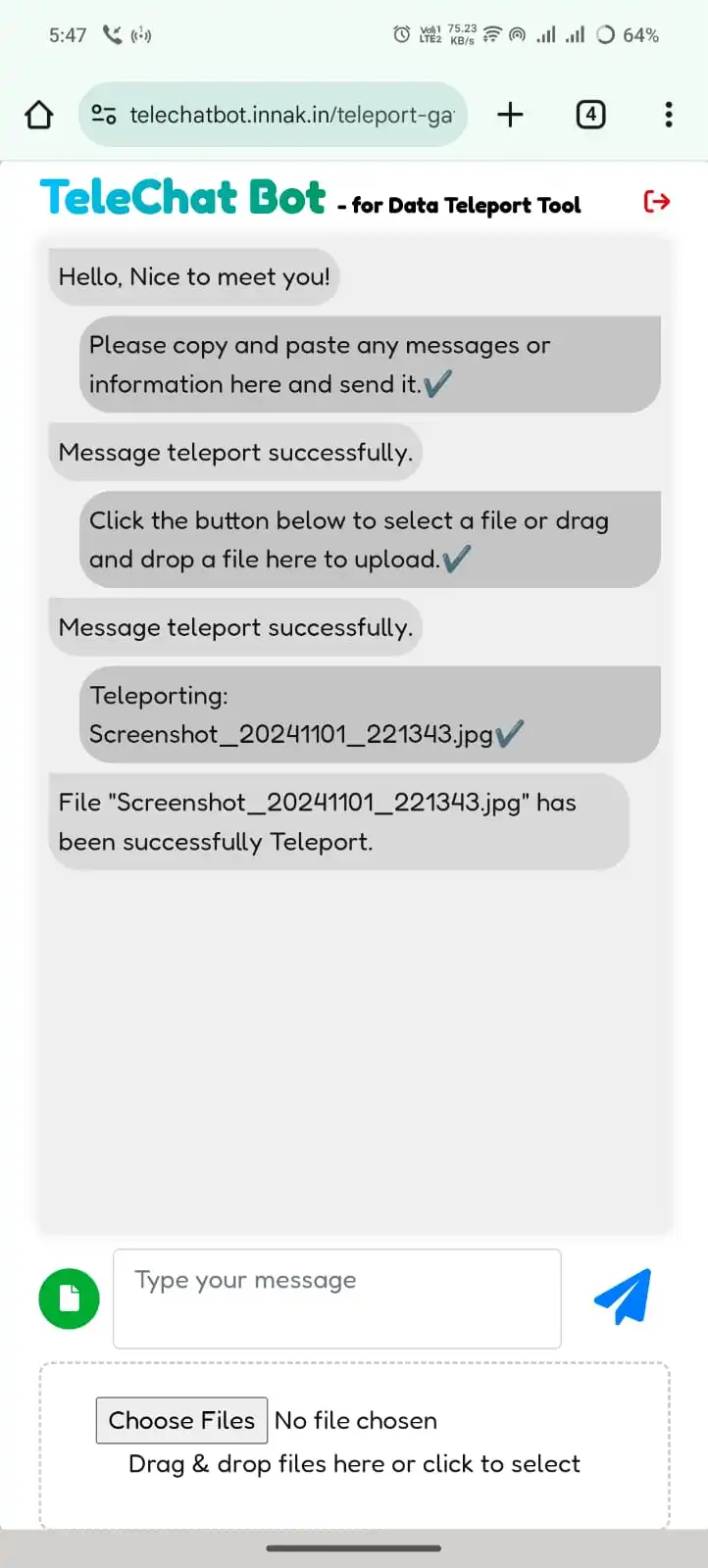 is nowhere to be found. TeleChatBot is your perfect solution, allowing you to send messages or files to